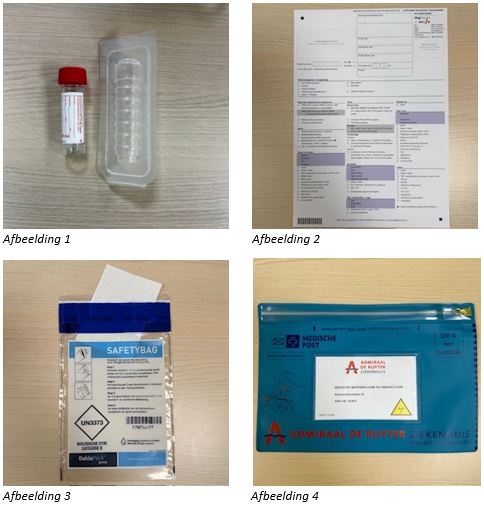 Plaats het urinepotje in de blister, sluit deze en doe het in de safetybag met absorberend vel. Doe de safetybag en het MMI-aanvraagformulier in de retourenvelop. Doe de retourenvelop op de post zonder postzegel.